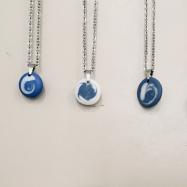Bijoux contemporains : pendentifs, colliers, boucles en bois, porcelaine et grès noir.