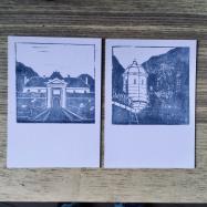 Voici les premiers tests en linogravure de vues du fort de Mont Dauphin.Une série de cartes postales est en préparation, comme d'anciens polaroids.