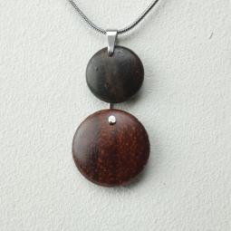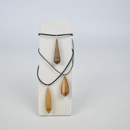 Bijoux contemporains : pendentifs, colliers, boucles en bois, porcelaine et grès noir.